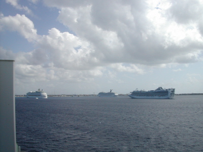 We were in port with two other ships this day, Explorer of the Seas, and Carnival Glory.