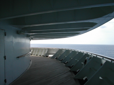 As stats show, she holds 2,600 passengers, double occupancy. More with third and fourth berths full. Some of my favorite feature are – walking the entire promenade, especially up to the front of the promenade which is actually the front of Emerald deck. I love being able to go to the very front of the ship and feel the wind in my face. This is NOT something you can do on many other ships. We spend the sail-away from