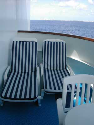 The mini-suites onboard actually do have the “normal” closet configuration I’m used to. Some online friends of mine that I met in person for the first time had the “infamous” E728 on the Emerald deck and I got an opportunity to hang out with them there a little. You’ll have to look at a Grand deck plan to see why this cabin is special. It’s the last one on the side, toward the aft of the ship, and it had an extra-big balcony that extends (see left). They did say that the sound-proofing is not very good between the Vista Lounge below them though, and they didn’t really appreciate the noise that went late into the night. I stopped by their cabin one evening when there was a show going on downstairs, and the floor in the hallway was vibrating with it, so I can’t imagine trying to sleep there.